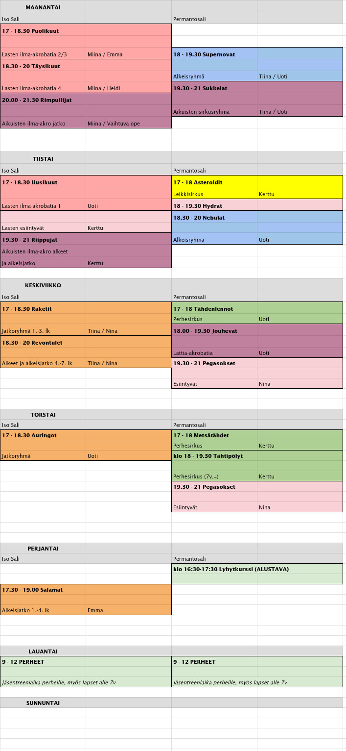 Alla on nähtävillä kevään lukujärjestys (päivitetty 9.1.2026). Muutoksia voi tulla edelleen lukukauden alussa ennen ryhmien alkamista. Tiedotamme mahdollisista muutoksista suoraan ryhmiin ilmoittautuneille oppilaille.